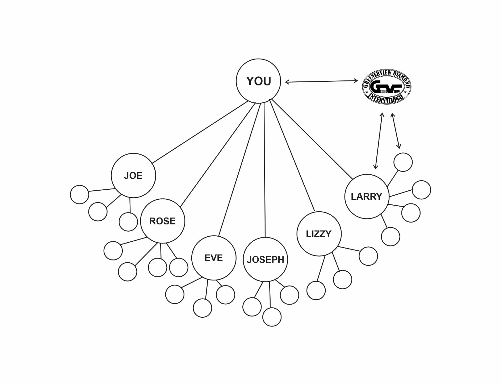 Building a bigger networking business to earn bigger. As you are building your business, Joe, Rose, Eve, Joseph, Lizzy and Larry are also building theirs thereby earn you greater income/bonuses.